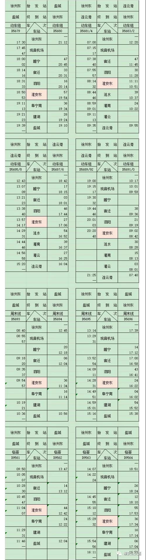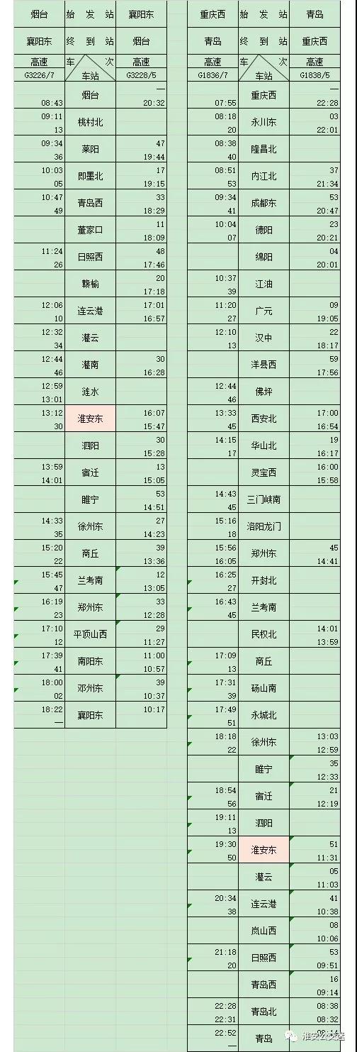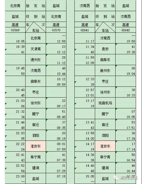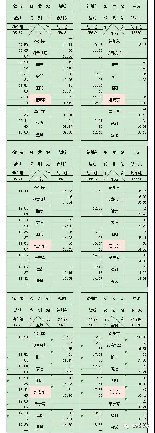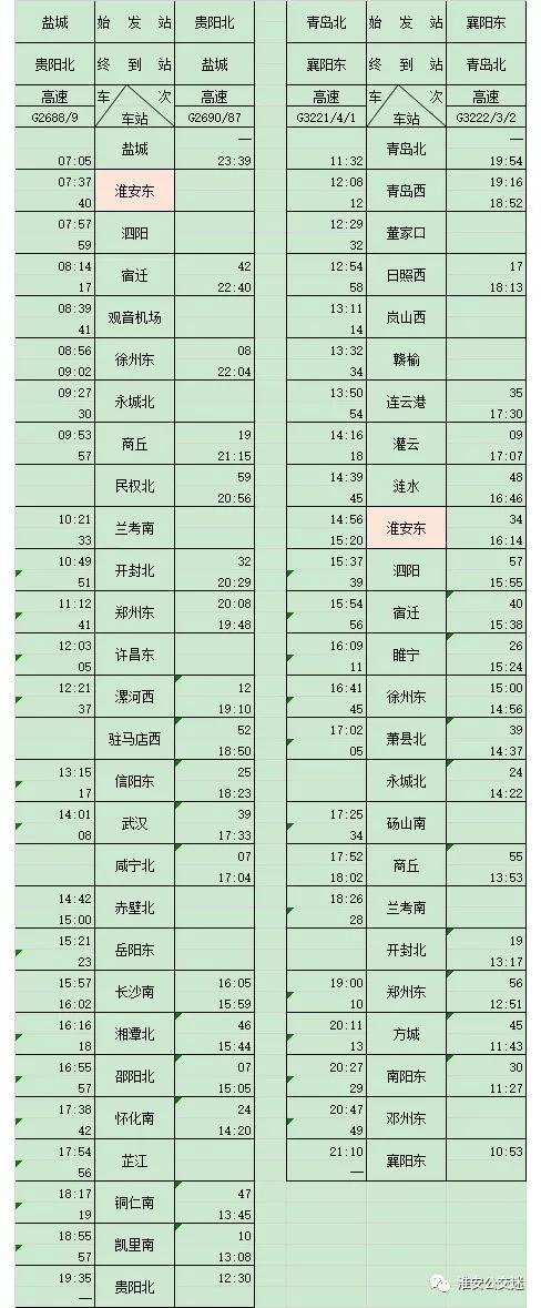 最新!淮安高鐵東站列車時刻表出爐!12306又能查詢淮安東站!